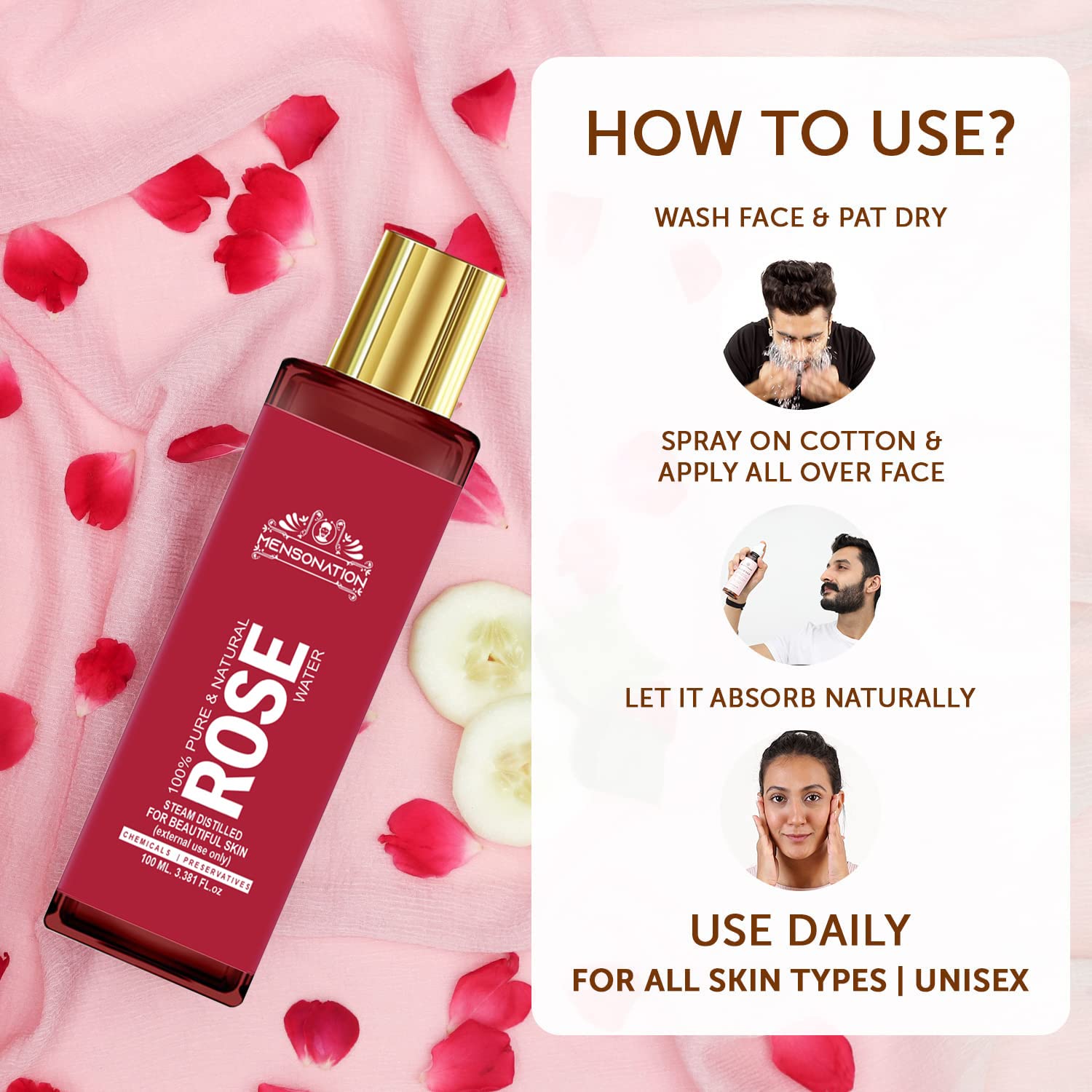 Mensonation Rose Water with No Paraben for Cleansing and Toning 100ml (1)