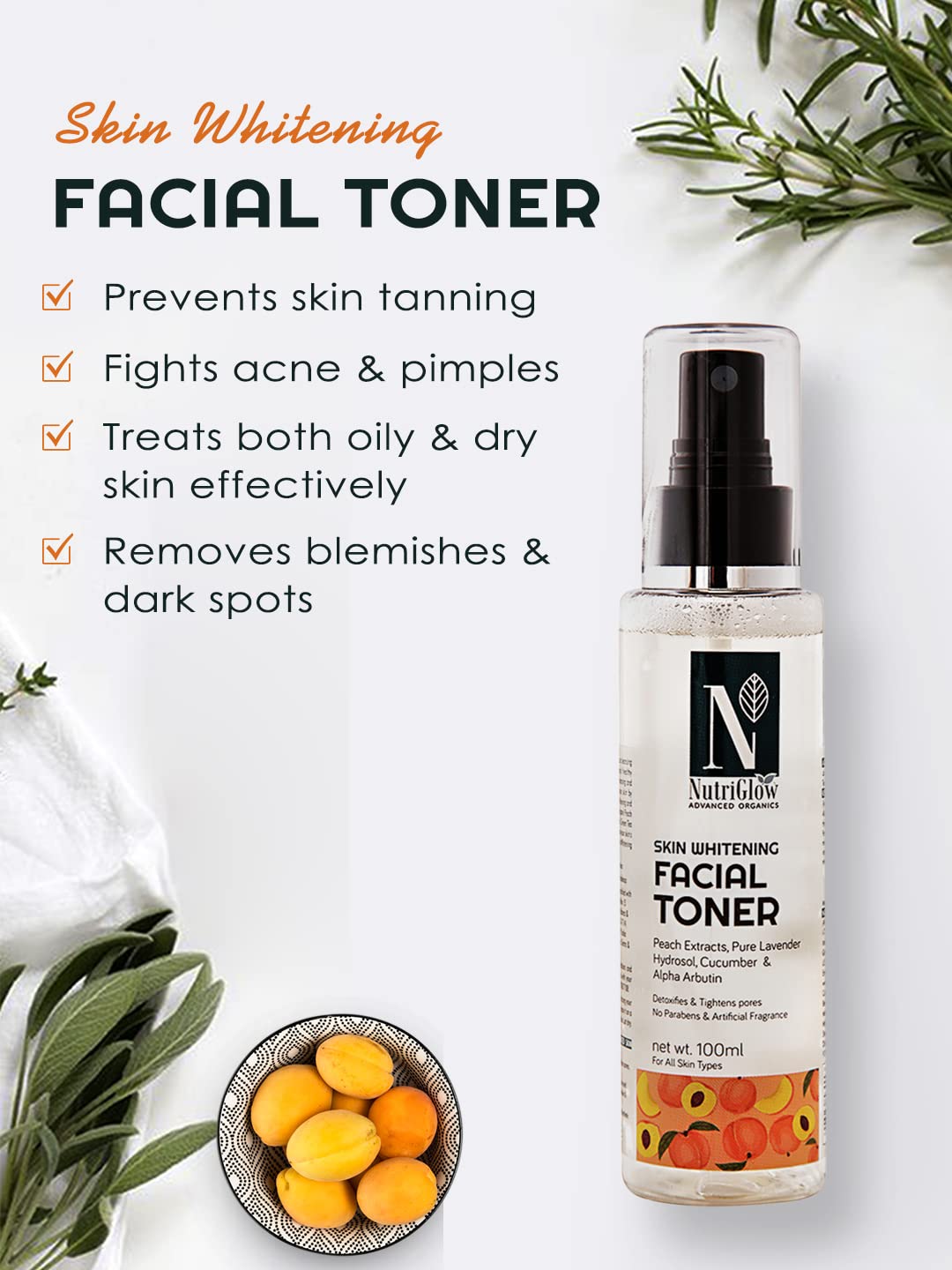 • S YOUR COMPLEXION: If plump nourished and revitalized skin is what you desire NutriGlow Skin Whitening Toner is the product for you. With brightening and whitening properties and Peach Extract it enhances dull complexion and gives you clear glowing skin
