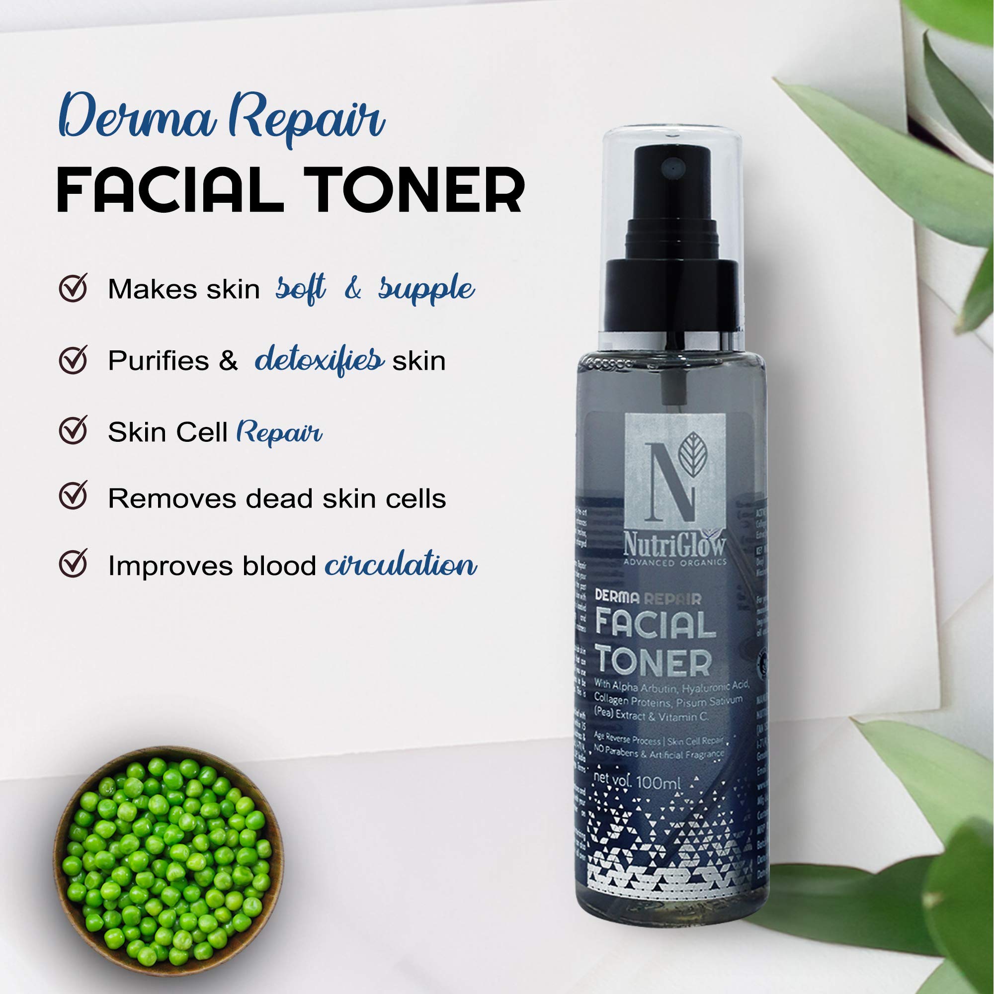 NutriGlow Advanced Organics Derma Repair Facial Toner For Skin Repair Reduce WrinklePore Tightening All Skin Types 100 ml