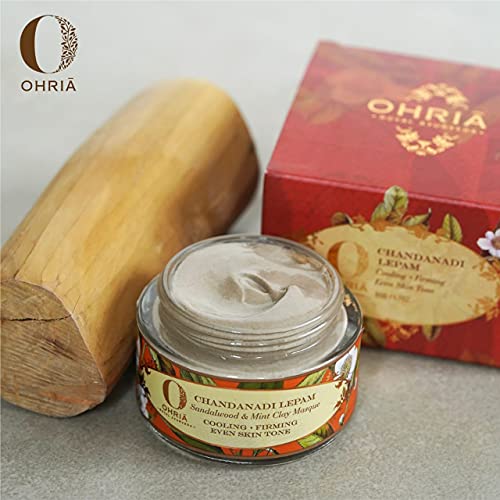 Ohria Ayurveda Sandalwood & Mint Clay Masque | Chandanadi Lepam for Cooling & Blemish-Reducing Face Pack| For All Skin Types | Enriched with Multani Mitti, Sandalwood, & Neem| 50g