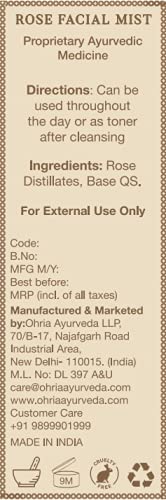 Ohria Ayurveda Rose Facial Mist Gulaab Ark | Normal Oily Acne-Prone Combination Skin | Refreshing &