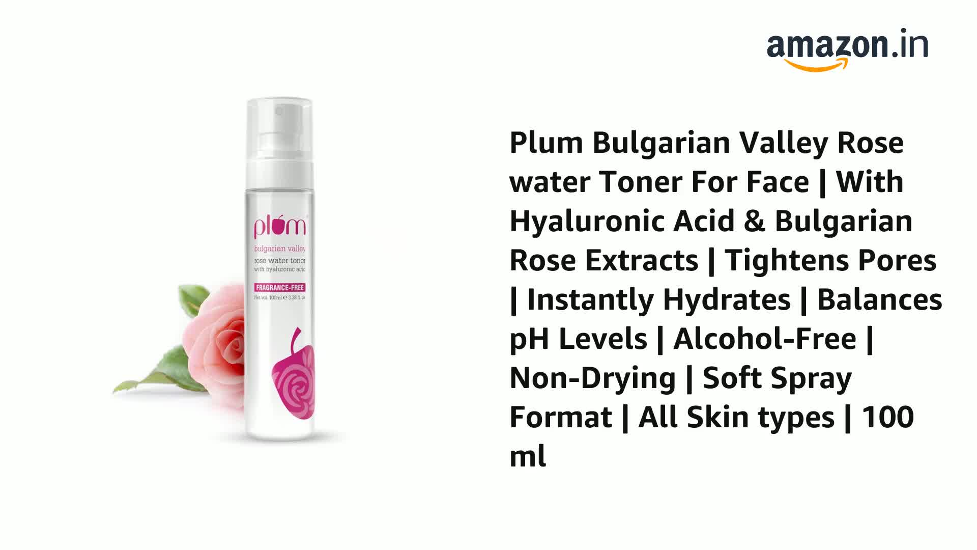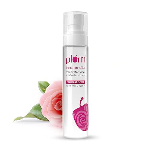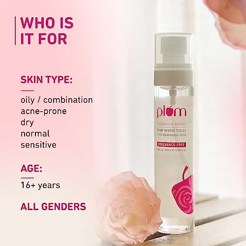 HomeHealth & PersonalSkin CareFace CareTonersPlum Bulgarian Valley Rose Water Face Toner | for Oily Acne Prone Dry Combination Skin | with Hyaluronic Acid | Hydrating & Pores Tightening | Balances pH Levels | Alcohol-Free | Women & Men | 100ml
