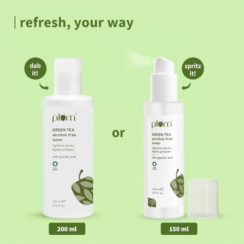 Product Description Goodness: figuring out an alcohol-free alternative - with ed green tea extracts. Lets put alcohol to better use. best alcohol-free toner from Plum. Make this an essential part of your skin care regimen for clear smooth well-toned skin. Astringency (tightness) on your skin that you can feel - great for enlarged pores. Antioxidant organic green tea extracts that help control blemishes and acne (pimples). And gentle exfoliation of debris and dead cells thanks to glycolic acid. 100 percent alcohol-free. All Plum packaging is 100% recyclable. Once youve used up all the goodness in your Plum bottles send your empties to us and well recycle them! Just reach out to us on our customer care contact number or email id and share your complete ress and contact number to request a pick-up. From the Manufacturer Natural alcohol-free astringent antioxidant skin toner.Thoughtfully formulated natural toner without the drying effects of alcohol. You can feel the astringent effect of green tea while the gentle exfoliation of glycolic acid helps remove dead cells and debris from your skin.Alcohol-freeAlcohol has been traditionally used in toners because it can shrink pores. However it is well known that alcohol can irritate and dry skin. This alcohol-free toner is 100% free of ethyl alcohol or its derivatives!Organic green tea extractsA great natural astringent (tightens pores) green tea is o anti-and provides the skin with nourishing anti-to decrease the signs of aging.Glycolic acidMore famously used in peels glycolic acid is an AHA (alpha hydroxyl acid) that helps keep skin refreshed and renewed.About Plum natural skin carePlum is India's first online-only beauty solution brand focused on restoring and maintaining your skin as nature made it to be. Always free of parabens phthalates SLS and other harmful chemic.
