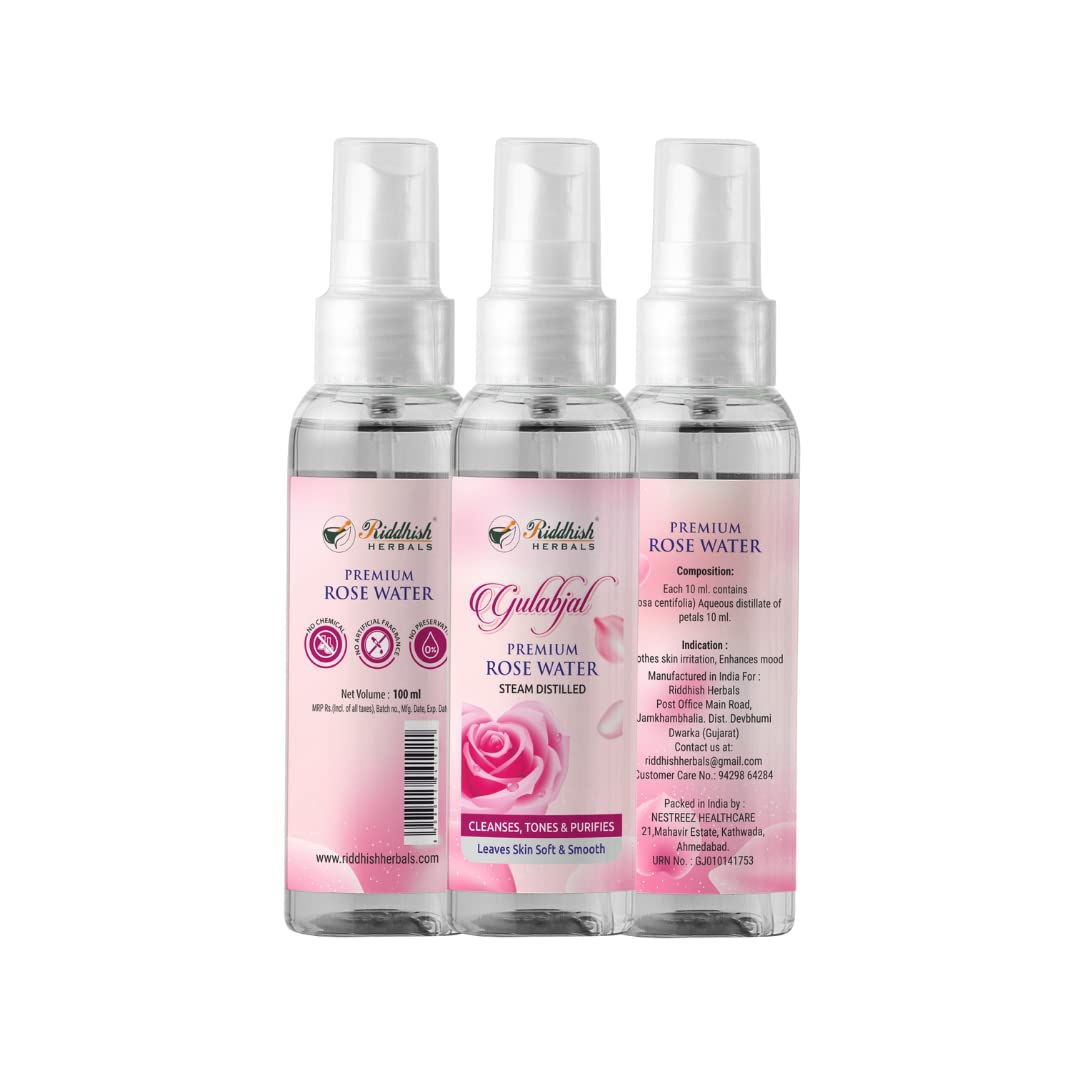 HomeHealth & PersonalSkin CareFace CareTonersRiddhish Herbals Premium Rose Water - 100% Natural & Pure Hydration & Refreshment No Additives Suitable for All Skin Types 200ml (Pack of 2)