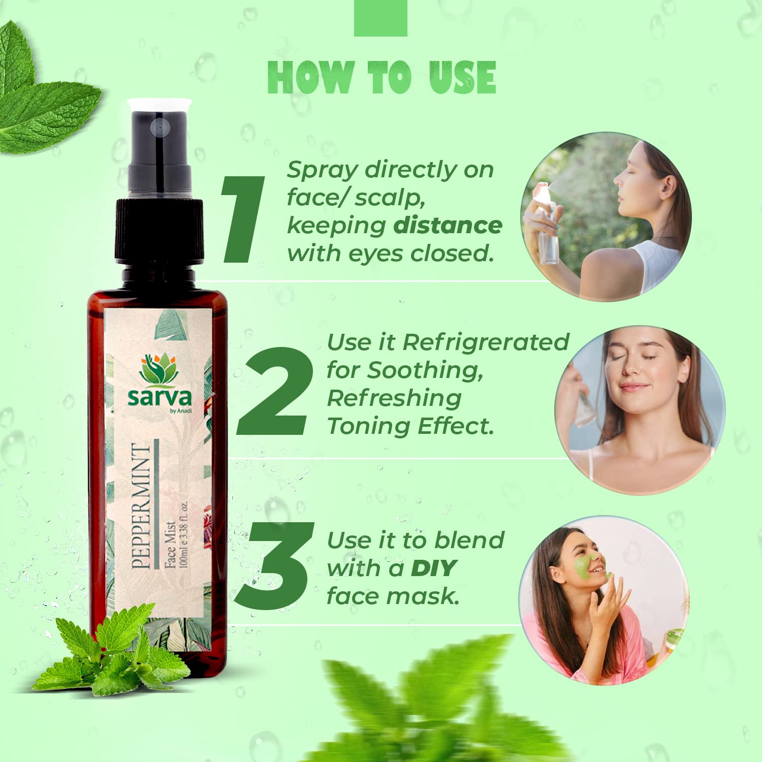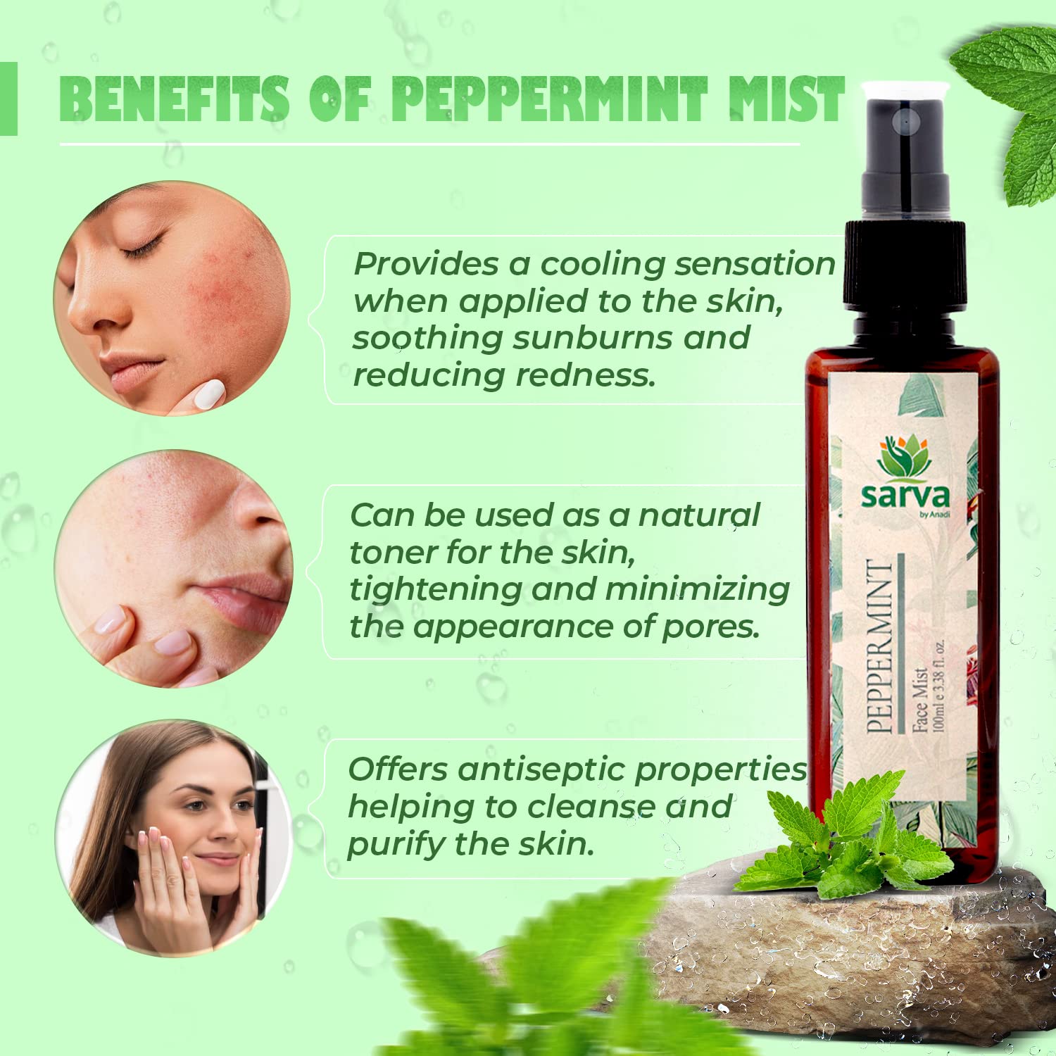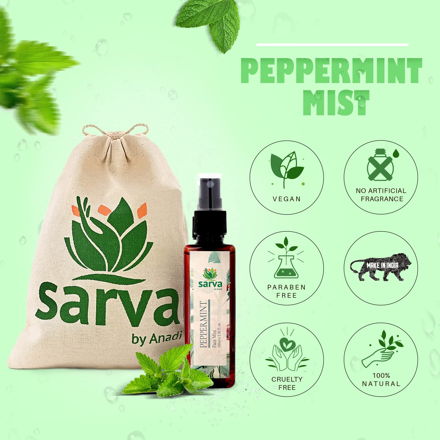 SARVA by Anadi 100% Pure Natural Peppermint Face Mist Astringent Floral Water Spray For Skin Soothing Face Facial Toner With Fresh Aroma All Sin Type (100 Ml)