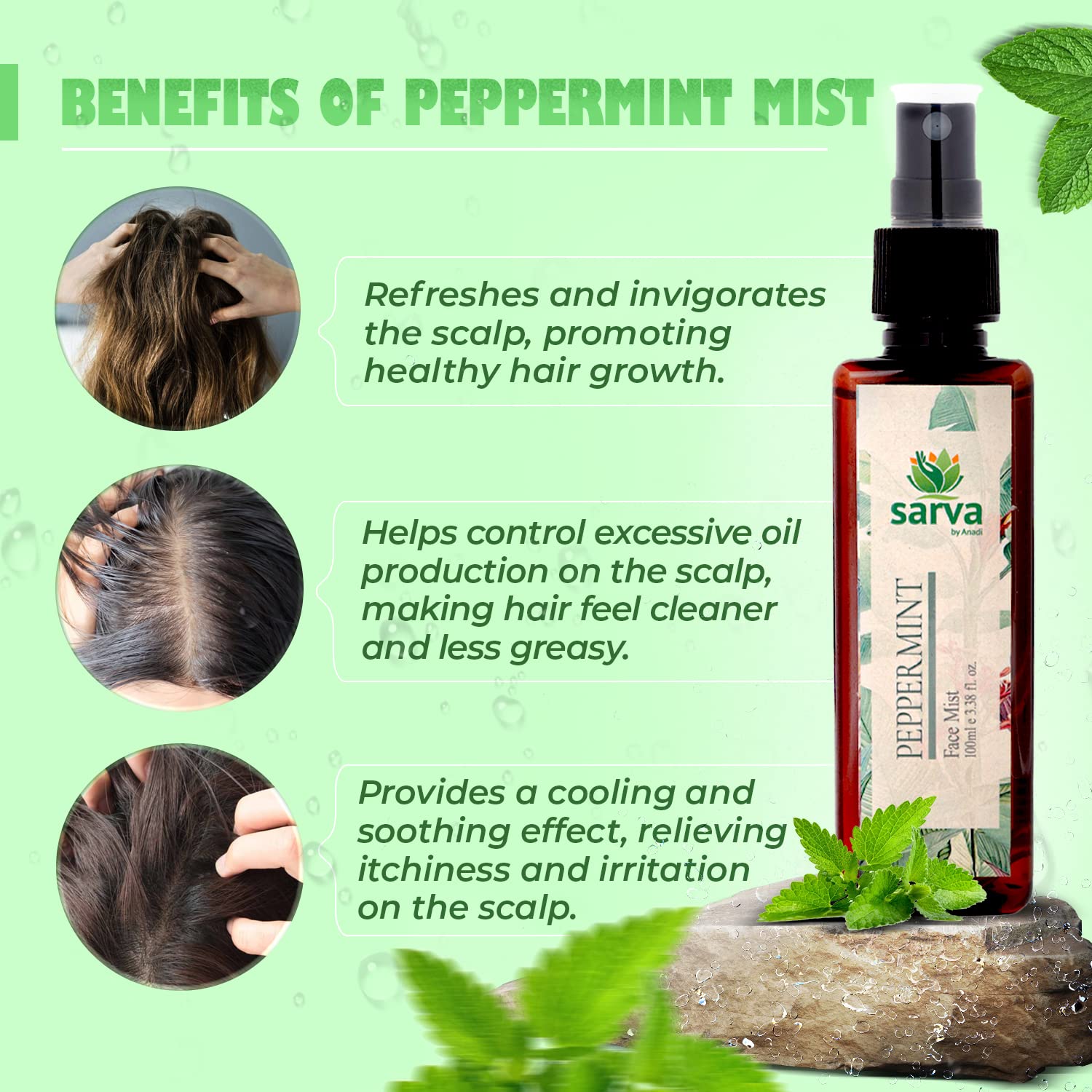 Peppermint Mist Is Pure 100% Natural Steam Distilled Hydrosol Which Acts As A Mist And Toner To Your Face And Body. Peppermint Is An Intensively Aromatic Enduring Herb Of The Mint Family Whose Hydrosol Is Extracted From The Mentha Citrata Plant Of The Lamiaceae Family Using The Steam Distillation Of Leaves. SARVA by Anadi Minty Fresh Hydrating Mist Refreshes The Skin On The Go. Sarva by Anadi represents a collection of pure and natural products originated in India.1Size: 100ml e 3.38 fl. Oz.Peppermint Face Mist Caters To Host Of Amazing Benefits Cooling Effect on Skin Post Workout or Hot Summer DayThis Minty Mist acts as a Natural Astringent Controls Sebum.Tightens Pores.Helps Against Skin Irritations.Treats Dry and Itchy Scalp.Best Suited for all Skin Types and is a Unisex Product.Directions For UseSpray Directly On Face/Body Keeping A Slight Distance With Eyes Closed.There Is No Need To Dilute The Hydrosols.Keep Your Peppermint Hydrosol Refrigerated For Enhanced Soothing And Refreshing Effect.Use It To Blend With A DIY Face MaskSerums and Moisturizers.Add It To Your Bathwater To Promote Softer Renewed Skin and For A Relaxing Aromatherapy Session. 6. Use Hydrosol To Freshen A Room by Simply Spraying it Within Your Space.ForewarningFor External Use Only. Avoid Contact With Eye. Keep Away From Children Under 3 Years.Do A Patch Test On Skin First. User Discretion Required.Store In DryCool Place.