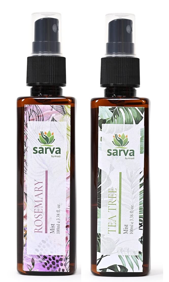 SARVA by Anadi Tea Tree Mist & Rosemary Mist for Hair Growth & Skin | Combo Set Diwali Gift For Sister Brother Men & Women | Suitable for all Skin Hair Type & All occasion Pack of 2 | 100 ML Each