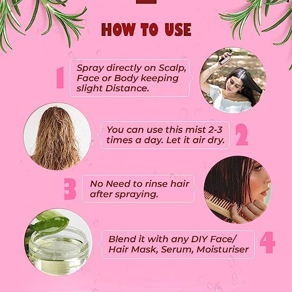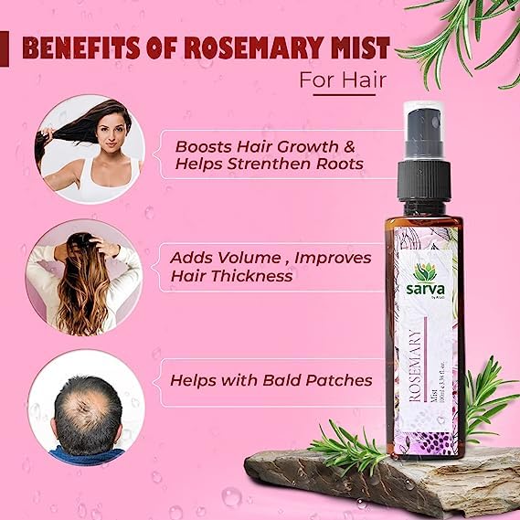 Rosemary MistRosemary Mist from Sarva By Anadi is 100% Pure and Natural Hydrosol obtained from Steam Distillation of Rosmarinus Officinalis leaves having a Sweet and Herbaceous aroma that suits almost All Skin Types. It is great for Hair and Skin both. Refreshing Effect on Skin and Scalp . Directions For Use  Spray Directly On Scalp/Skin Keeg A Slight Distance With Eyes Closed.There Is No Need To Dilute The Hydrosols.Keep Your Rosemary Hydrosol Refrigerated For Enhanced Soothing And Refreshing Effect.Use It To Blend With A DIY Hair/Face Fancy Cover Serums And Moisturizers.
