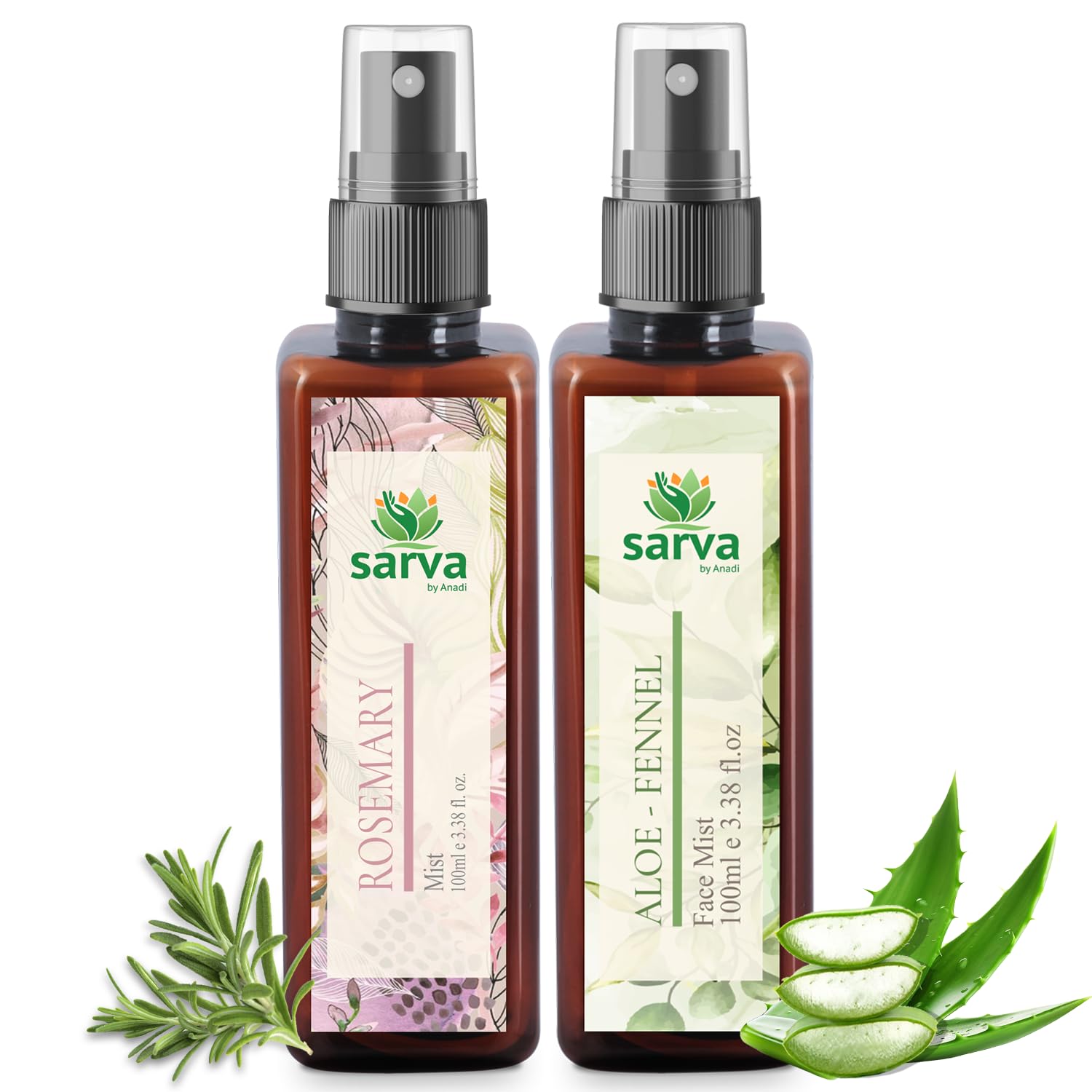 SARVA by Anadi Rosemary Mist for Hair Growth Smoothening Regrowth Frizzy Hair Treatment | Aloe Fennel Face Mist for Glowing Skin Nourishing Refreshing & Hydrating | Pack of 2 100 ML Each