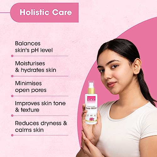 • Natural Glow & Hydration: Rose is known for improving skin complexion. The natural oils in TAC'S pure and natural rose water penetrate into the skin and give a natural glow and hydration to it.