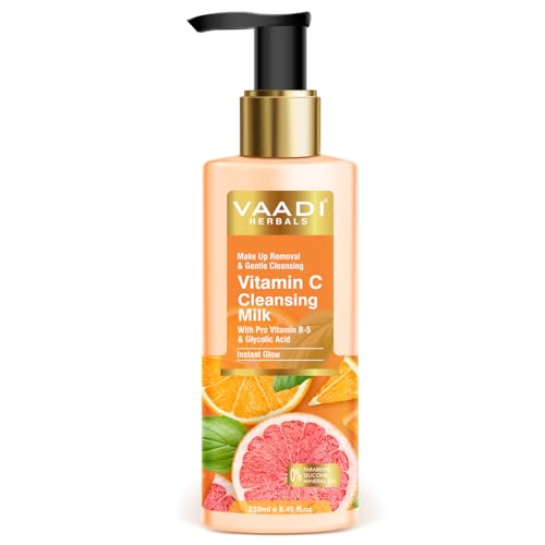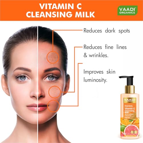 Vaadi Herbals Vitamin C Cleansing Milk with Facial Toner| With pro Vitamin B5 With Witch Hazel| Skin Brightening, Anti-Ageing, Hydrating Make up Removal & Instant Cleansing (250 ml X 2)