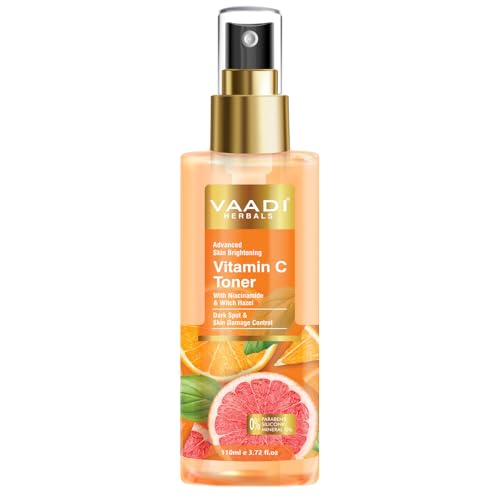 • Vaadi Herbals Vitamin C Toner is a daily astringent facial mist that hydrates the skin and balances its pH level. Daily use of this toner helps minimize pores while prepping the skin to absorb serums and moisturizers more effectively.