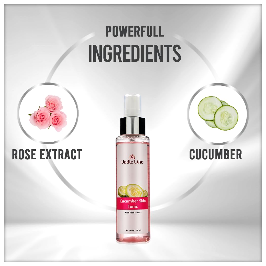 • Vedicline Cucumber Skin Tonic provides a pleasant cooling sensation with a dozen vitamins that assist in the recovery of sun-damaged antiand protect your skin from which caused by acne.