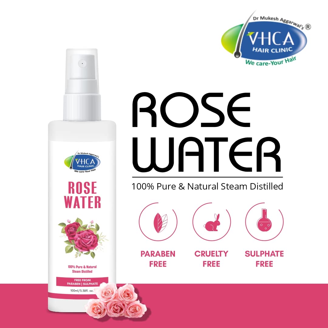 VHCA Pack of 3 Distilled Rose Water spray for the face. This Distilled Rose Water spray for the face is free from all harmful chemicals. Distilled Rose Water is suitable for men and women. Distilled Rosewater or Gulab Jal is made by steaming rose petals in water. Distilled Rosewater is something we all use on a daily basis and it is that Versatile ingredient that is suitable for every skin type. The water helps to soothe skin and keep it moisturized. Ingredients: Distilled Rosewater Glycerine Direction For Use: Cleanse your face thoroughly with face wash. Spray the required amount of toner 4-5 times all over your face. Do not rub. Let the toner air dry on your skin.