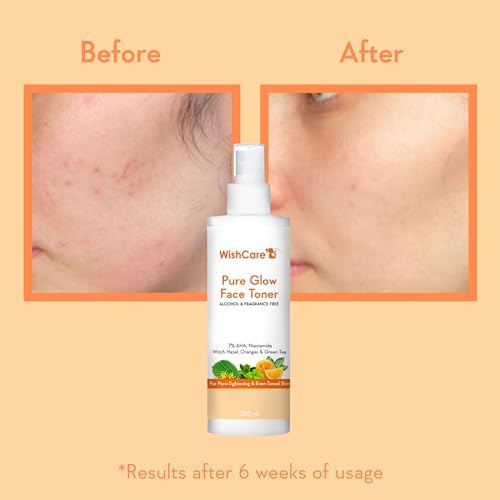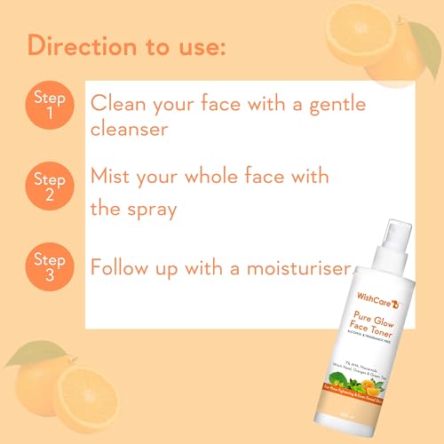 WishCare Pure Glow Face Toner - 5% Fruit AHA, Hyaluronic Acid, Niacinamide & Oranges - For Glowing, & Pore Minimizing - 200ml, (PGFT200)