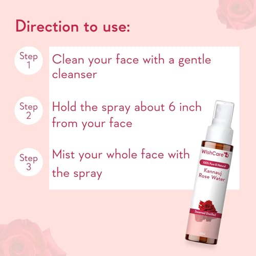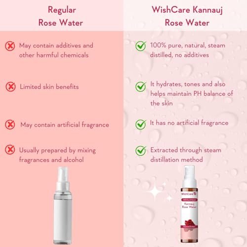 100% PUE & NATURAL : WishCare Rose water is completely pure natural and sourced from Kannauj which is famous for cultivating finest Roses in India.. Absolutely ZERO Additives & Alcohol. Naturally hydrate revitalize & moisturize your skin for a refreshed l