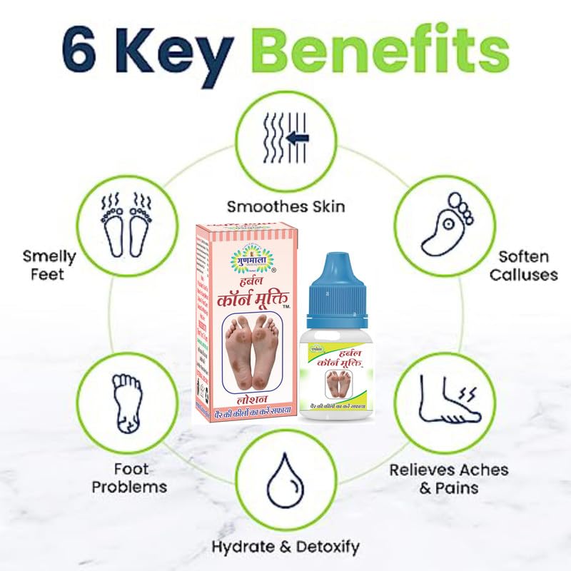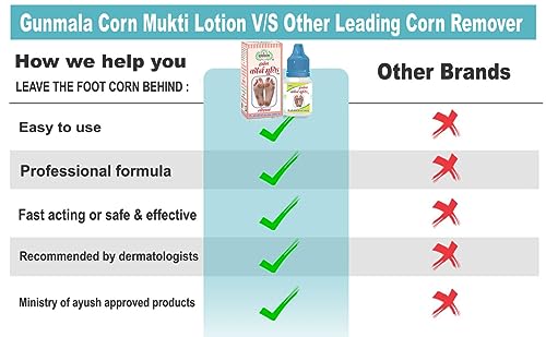 Gunmala Herbal Corn Kill Lotion Is A Ayurvedic Medicine For Corn / Gokharu Which Usually Forms Under The Sole Of Feet . It Is A Certified Ayurvedic Medicine Which Relieves Pain & picky And Pinching Type Of Pressure Sensations While Walking. DIRECTION FOR USE : 1. Please Use The Drug One Hour Before Sleep At Night 2. At First Add Salt In A Bucket With Lukewarm. 3. Put Your Legs Dipped In Water For Ten Minutes. 4. Wipe Off The Sole Remove The Hard Part Of Corn As Much As Possible. 5. Mix The Lotion Properly With Provided Stick Before Applying. 6. Keep The Bottle Closed After Use. 7. Reapply The Drug On The Same Site After 10 Minutes. 8. Let The Medicine Stay Overnight. If You Feel A Burning Sensation Or Irritation After Some Time Then Keep The Medicine For As Long As You Can Tolerate Or Clean It With Water & Apply Pure Ghee Or Coconut Oil . 9. Use The Medicine With The Same Process For About A Week And Protect The Feet From Dust & Dirt . 10. If You Are Experience Some Pain While Applying The Medicine Then Use It On Alternate Day. PRECAUTIONS : 1. Diabetic & High Blood Pressure Patients Use It After Proper Check-ups. 2. If Lotion Drys Use New Pack . 3. Do Not Apply Your Solution To Others To Avoid Cross Infections . 4. Use Medicine Within 15 Days After Opening The Cap . 5. Keep It In Cool & Dry Places. 6. Keep It Away From Children.