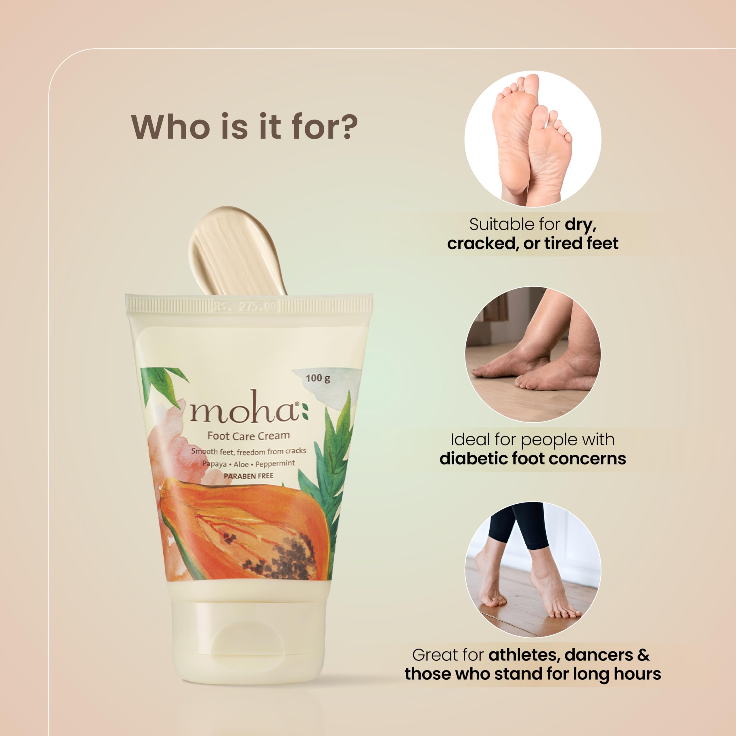 moha: Foot Cream For Rough Dry and Cracked Heel Feet Cream For Heel Repair With Benefits Of AleoVera Papaya & Peppermint Each 100 gram (Pack of 2)