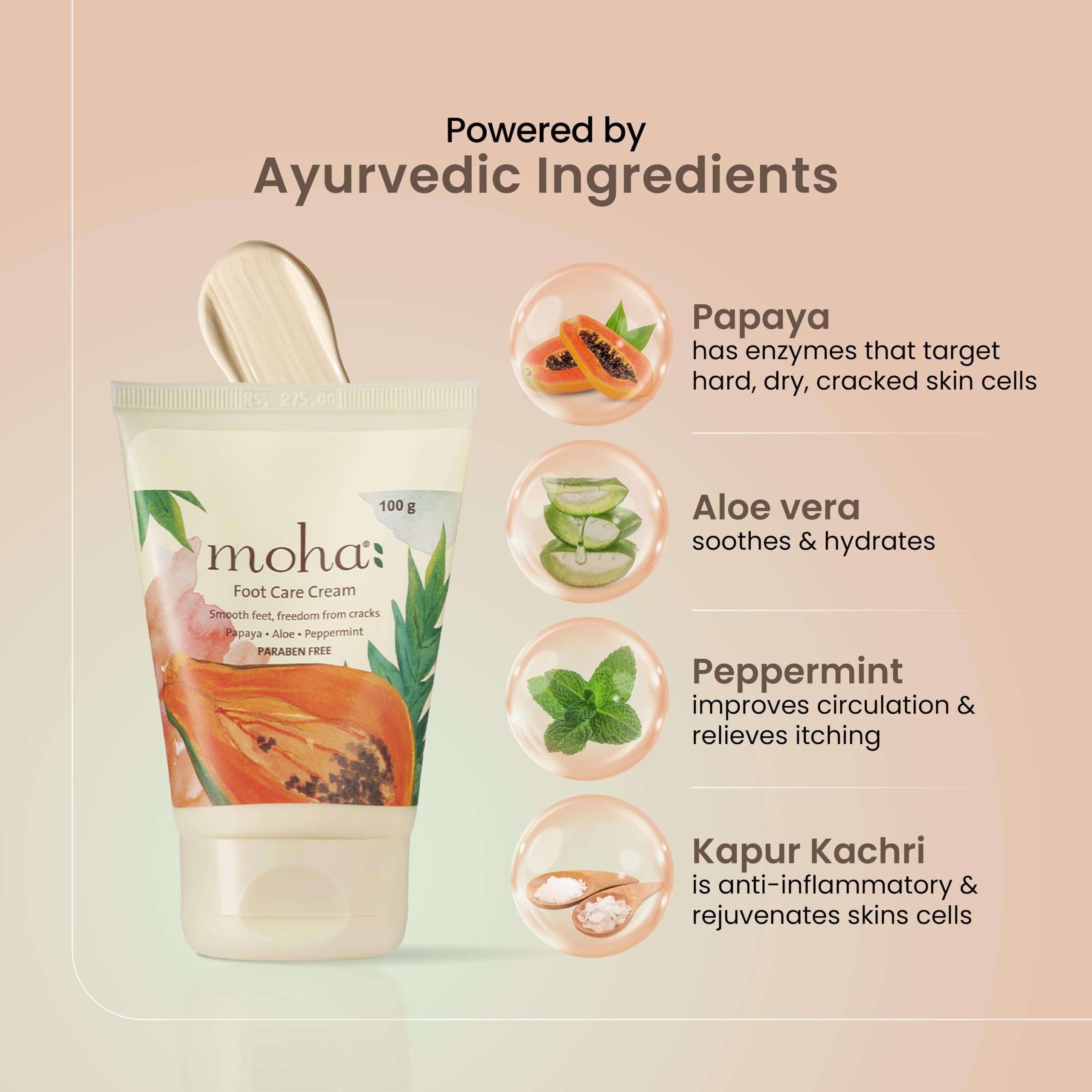 Remedy For Itchy Feet : Kapur Kachri ( Ginger Lily) & Aleo vera with natural antiseptic properties kills germs & protects your feet from infections & other related issue.; Moha Foot care cream is an ayurvedic paraben-free sulphate-free foot cream. its gen