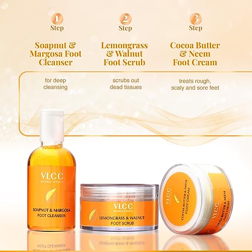 VLCC Pedi Glow Foot Care Kit - 100g + 200ml | Keeps Your Feet Clear, Soft, and Smooth | A Combo of Foot Cream, Foot Scrub, Foot Cleanser, and Foot Spray.
