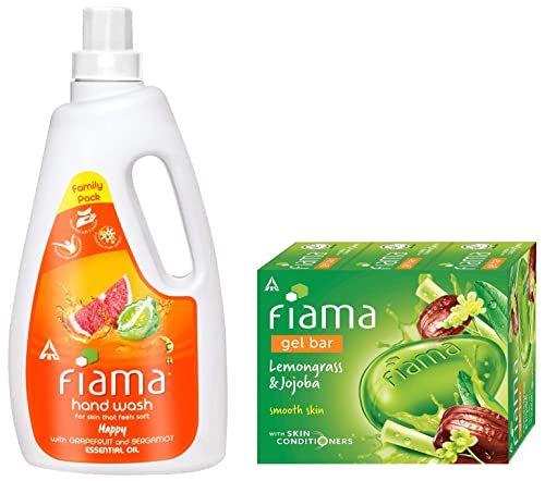 Fiama Happy Moisturising hand wash Grapefruit and Bergamot 1000ml refill packFiama liquid handwash contains fragrance that is proven to make you feel happy. The gel formulation contains skin conditioners that make your hands soft and has natural germ protection to keep your hands safe. Available in 3 variants - happy relax and fresh.Fiama Gel Bar Lemongrass And Jojoba for Smooth Skin With Skin Conditioners 125g (Pack Of 3)Wash away the troubles of your day with the foamy fresh and fun Fiama Gel Bar. And while you enjoy your Fiama bath let its skin-conditioners work their magic to make your skin soft and smooth. This Lemongrass and Jojoba gel bar wakes you up and pulls you out of a dull day with its zingy citrus fragrance. It is filled with natural goodness that makes your skin soft and smooth. So get ready for a smooth start to your day with Fiama.
