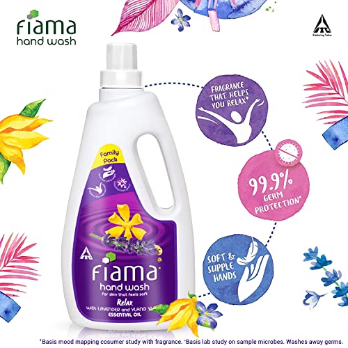 Fiama Relax Hand Wash, 1000ml refill pack, Lavender and Ylang Ylang, For Soft and Supple Hands, Fragrant Handwash