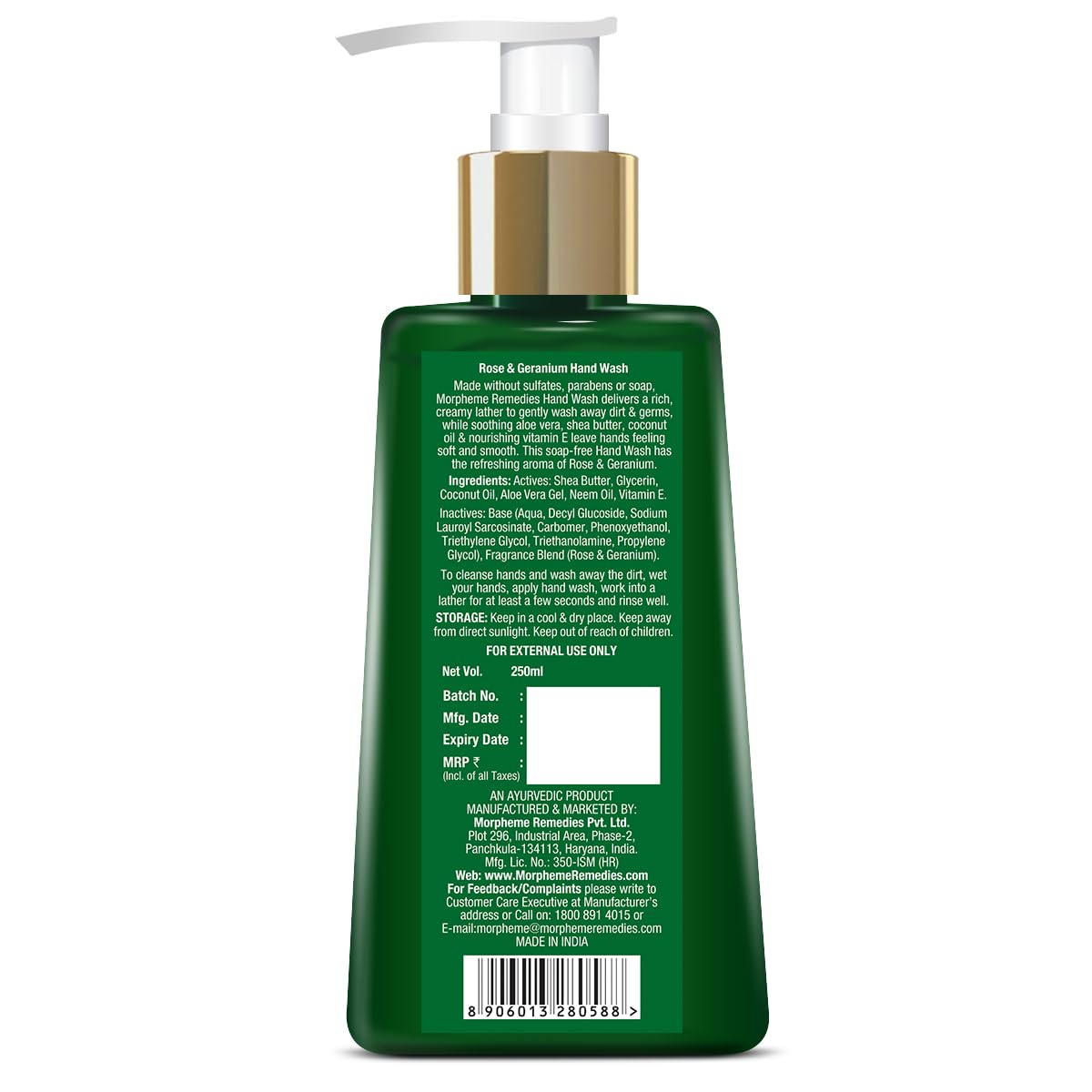 Morpheme Remedies Hand Wash Rose & Geranium Anti Bacterial 250ml - Soap Free Hand wash