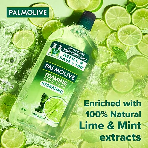 Palmolive Hydrating Foaming Lime & Mint Liquid Hand Wash 250 ml Dispenser Bottle | Refreshing citrus fragrance | Rich nourishing foam | Refreshing fragranceYour hands come in contact with multiple surfaces every day. Keeping them clean ensures that you and your loved ones are safe from germs and harmful bacteria. Palmolive Hydrating Foaming Lime & Mint Liquid Hand Wash is a rich foaming hand wash that cleanses your hands and leaves them feeling soft and fresh. Enriched with natural ingredients like lime and mint the hand wash pampers your hands with every wash and invigorates your skin leaving them refreshed and fragrant. Palmolive is a premium personal care brand that creates a luxurious experience across all products. The goal is to provide the benefits of natural exotic ingredients leaving you feeling pampered with healthy and moisturized skin.Palmolive Hydrating Foaming Lime & Mint Liquid Hand Wash 500 ml Refill Bottle | Refreshing citrus fragrance | Rich nourishing foam | Refreshing fragrancePalmolive Hydrating Foaming Hand Wash with Lime & Mint is an invigorating and protecting hand wash that does more than just cleaning your hands. It's rich and foamy lather infused with the benefits of refreshing lime and mint ensures effective cleaning and hydration. Palmolive Handwash helps in maintaining freshness around you while delighting your senses with its oh so delicious fragrance. So pamper your hands with every wash and lather up with this foaming liquid handwash for a soft and satisfying germ-free hand washing experience.