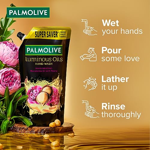 Palmolive luminous oils invigorating handwash is specially made with the luxuriously rich blend of macadamia oil and peony extracts for your soft hands. The fragrant skincare formula is infused with botanical oil and helps to gently yet thoroughly cleanse your hands. Use palmolive luminous oils handwash daily for germ-free soft and smooth hands.