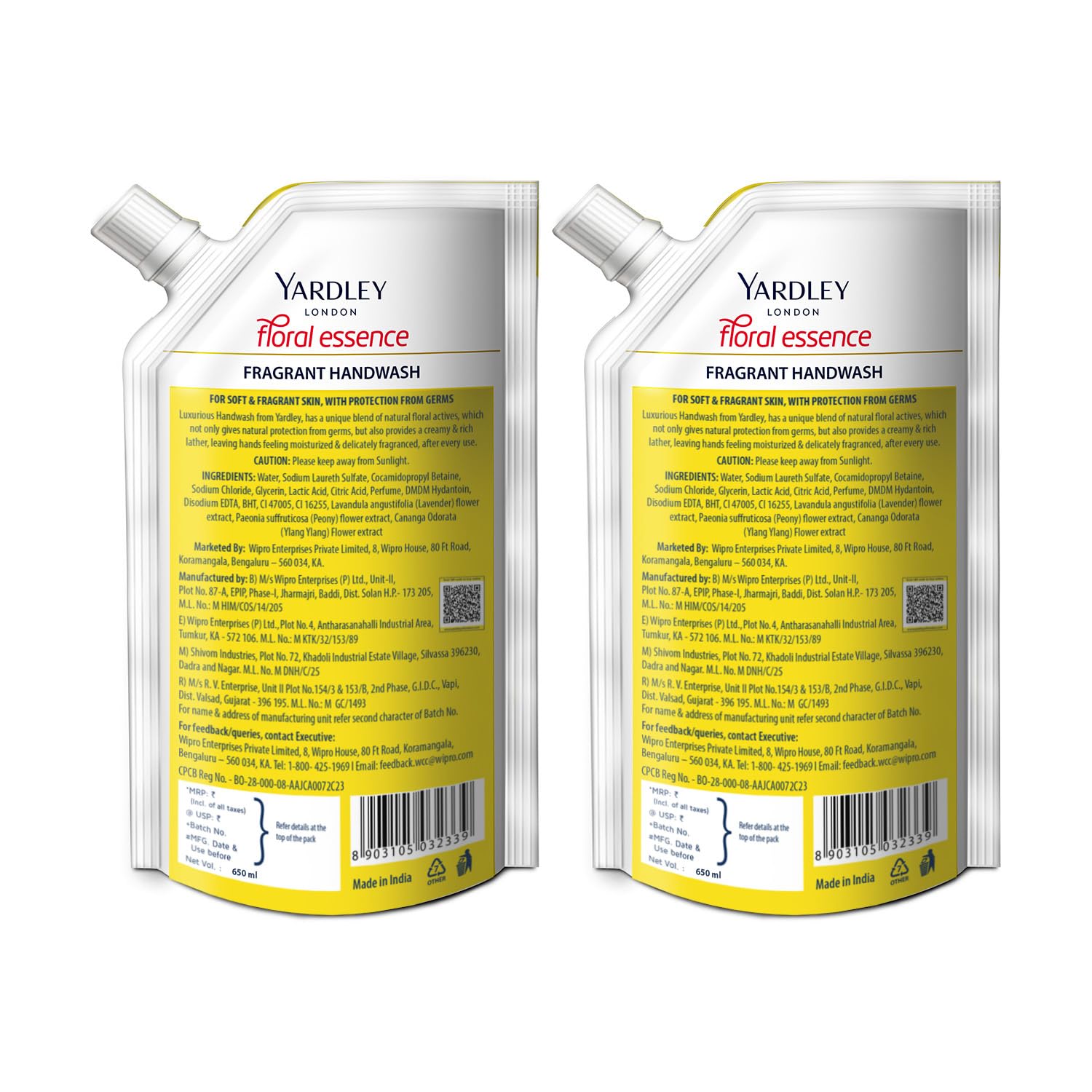 Yardley London Floral Essence Peony & Ylang Ylang Handwash Refill 650ml (Pack of 2)