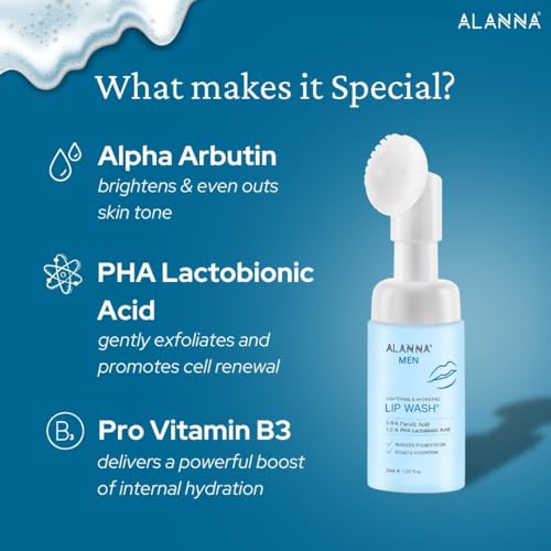 ALANNA Lightening Lip Care Pro Kit for Men | 0.5% Alpha Arbutin & 1% PHA Lactobionic Acid | Repair Dark Lips | Fades Pigmentation | Reveals Pinker Lips | Combats Lip Darkness |30 ml + 15 gm