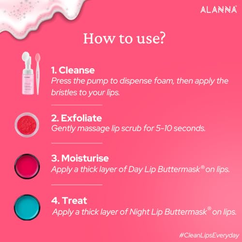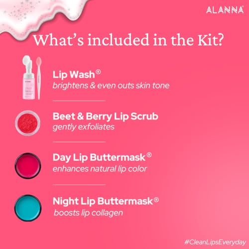ALANNA® 4-Step Brightening Lip For Women | LipWash®, Scrub, Balm & ButterMask® | For Dark Pigmented Lips | 0.5% Ferulic Acid, 1% PHA Lactobionic Acid & Retinoid | 30ml + 45gm