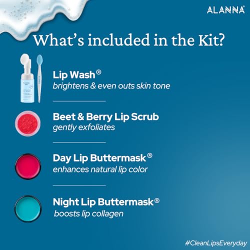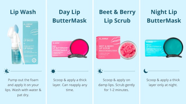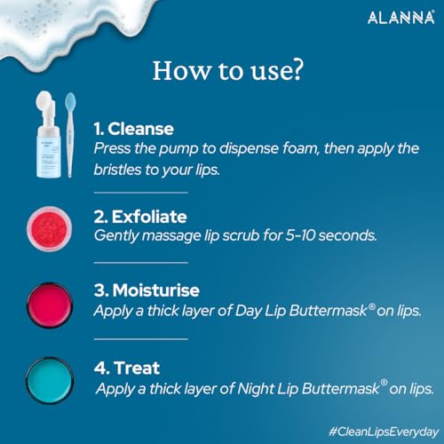 ALANNA® 4-Step Brightening Lip | For Men's | LipWash®, Scrub, Balm & ButterMask® | Dark Pigmented Lips | 0.5% Ferulic Acid, 1% PHA Lactobionic Acid & Retinoid | 30ml + 45gm