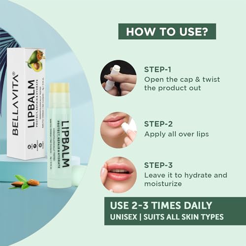 Bella Vita Organic Natural LipBalm for Dry Damaged & Chapped Lips Enriched with Shea Butter, Avocado 4 gm