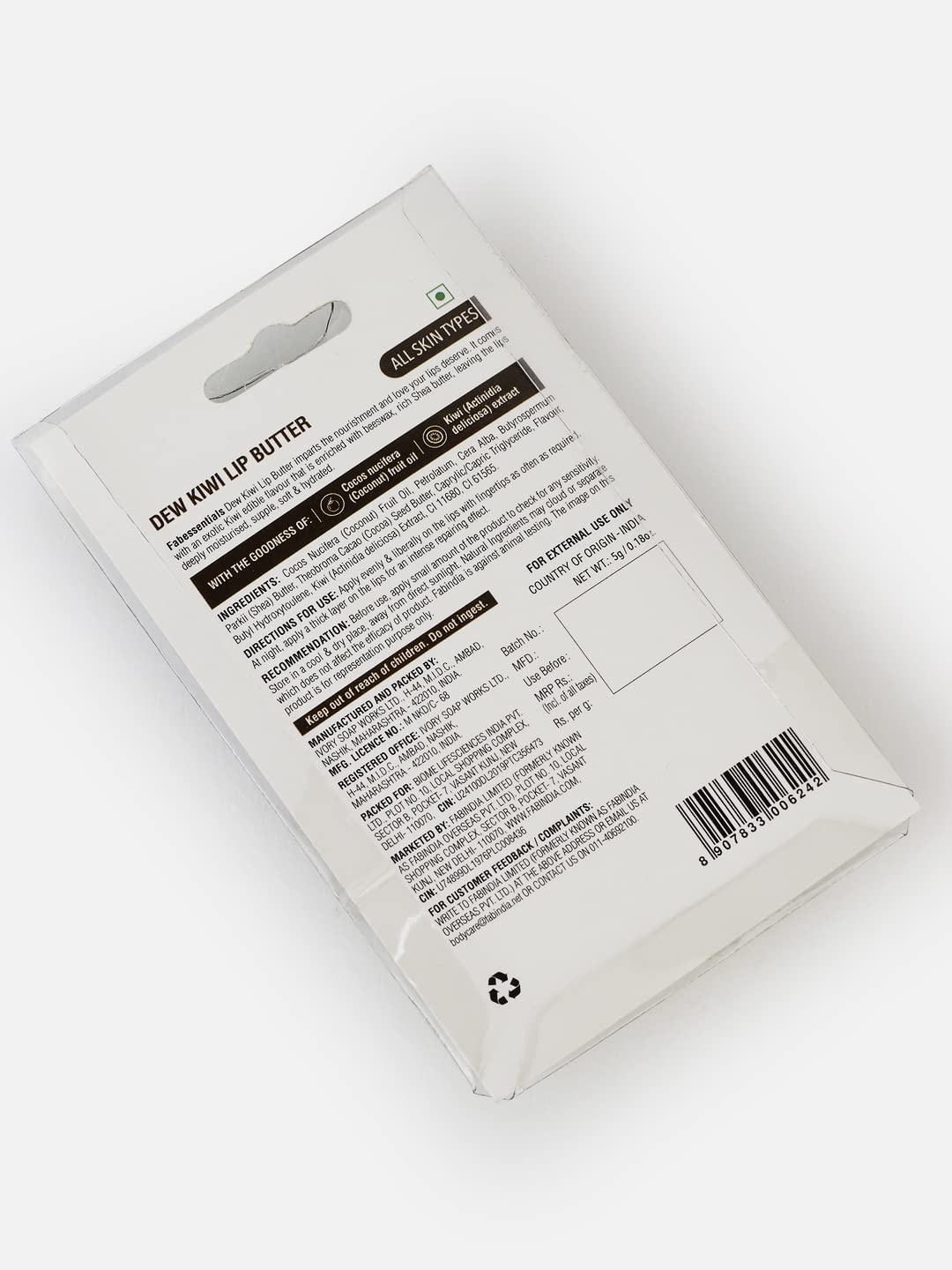 Fabessentials Dew Kiwi Lip Butter imparts the nourishment and love your lips deserve. It comes with an exotic Kiwi edible flavour that is enriched with Beeswax Sunflower oil rich Shea butter leaving the lips deeply moisturised supple soft & hydrated.