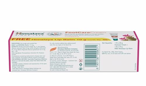 Himalaya Foot Care Cream 20 g|Helps Repair Cracked Heels |For Soft & Supple Feet | Get Free Lip Balm | Herbal formula