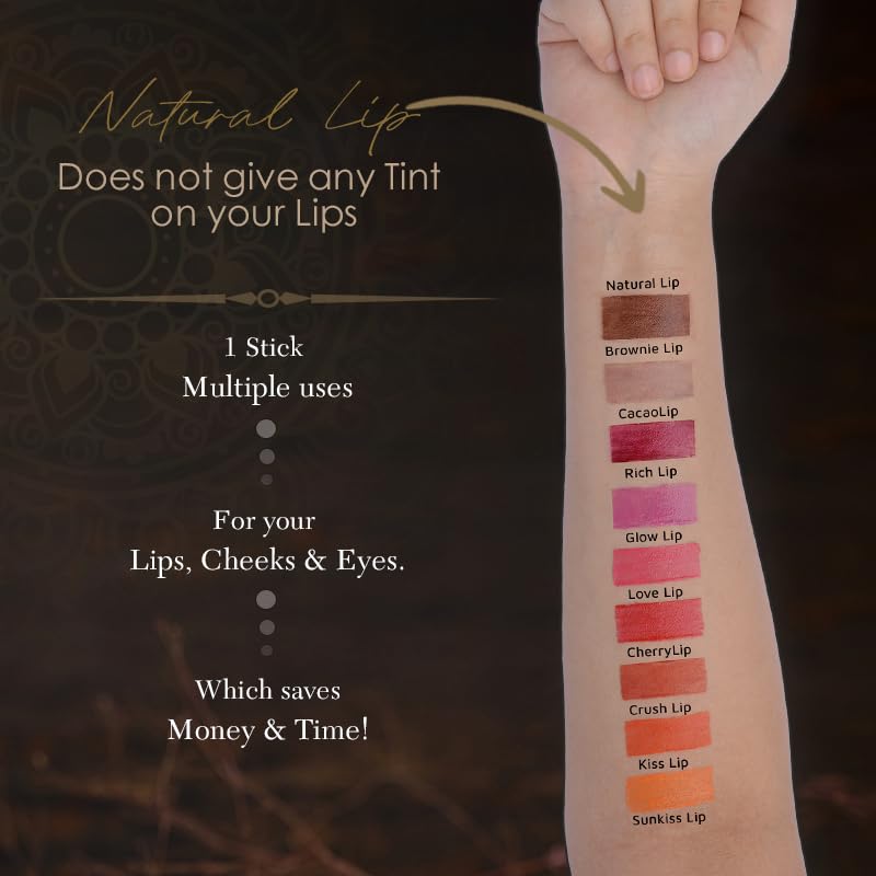 Kaumudi Handmade & 100% Natural 3 In 1 Lip Balm (Lip Tint Cheek Tint Eye Shadow) Made With Rose & Saffron Essential Oil Best For Dry Damaged & Chapped Lips Hydrates & Moisturizes (Crush Lip)