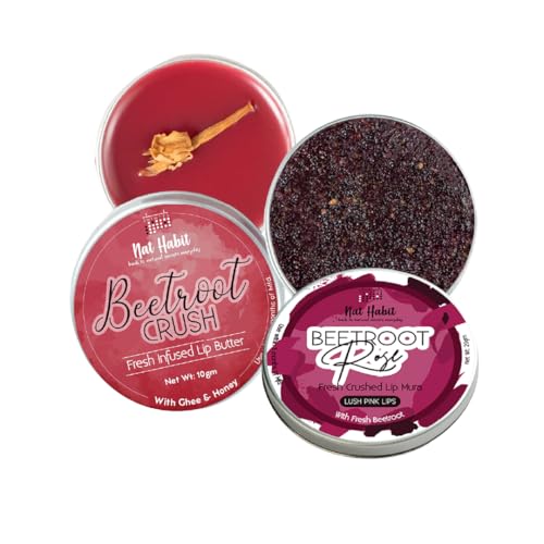 Beetroot Crush Lip Butter : Deliciously fresh express healing & protective lip butters for lush soft healthy lips. Slow HEAT Infused with fresh fruits leaves & flowers and whipped with desi ghee raw honey shea and spices for ultra repair and protection of lips. Due to high anti-oxidant content these kitchenmade lip butters are not only moisturising but also help prevent aging of lip cells. They prevent chapping darkening discoloration pigmentation and pave way for pink soft plush lips. Perfect for daily home-fresh fully natural lip care you have always wanted! ZERO chemicals & preservatives. ZERO mineral oil & paraffins. Beetroot Rose Lip Mura : Deliciously fresh & protective lip scrub range for lush soft healthy lips. Made of fresh fruits spices desi ghee raw honey brown sugar & more for all your lip needs. Due to high anti-oxidant content these kitchenmade lip scrubs are not only exfoliating but also help prevent aging of lip cells. They prevent darkening discoloration pigmentation and pave way for pink soft plush lips. Perfect for daily home-fresh fully natural lip care you have always wanted! ZERO chemicals & preservatives. ZERO mineral oil & paraffins. Natural Pink Lips Coconut Oil Shea Butter Beetroot Honey Ghee Rose Oil DarkDry & Chapped Lips Brightening