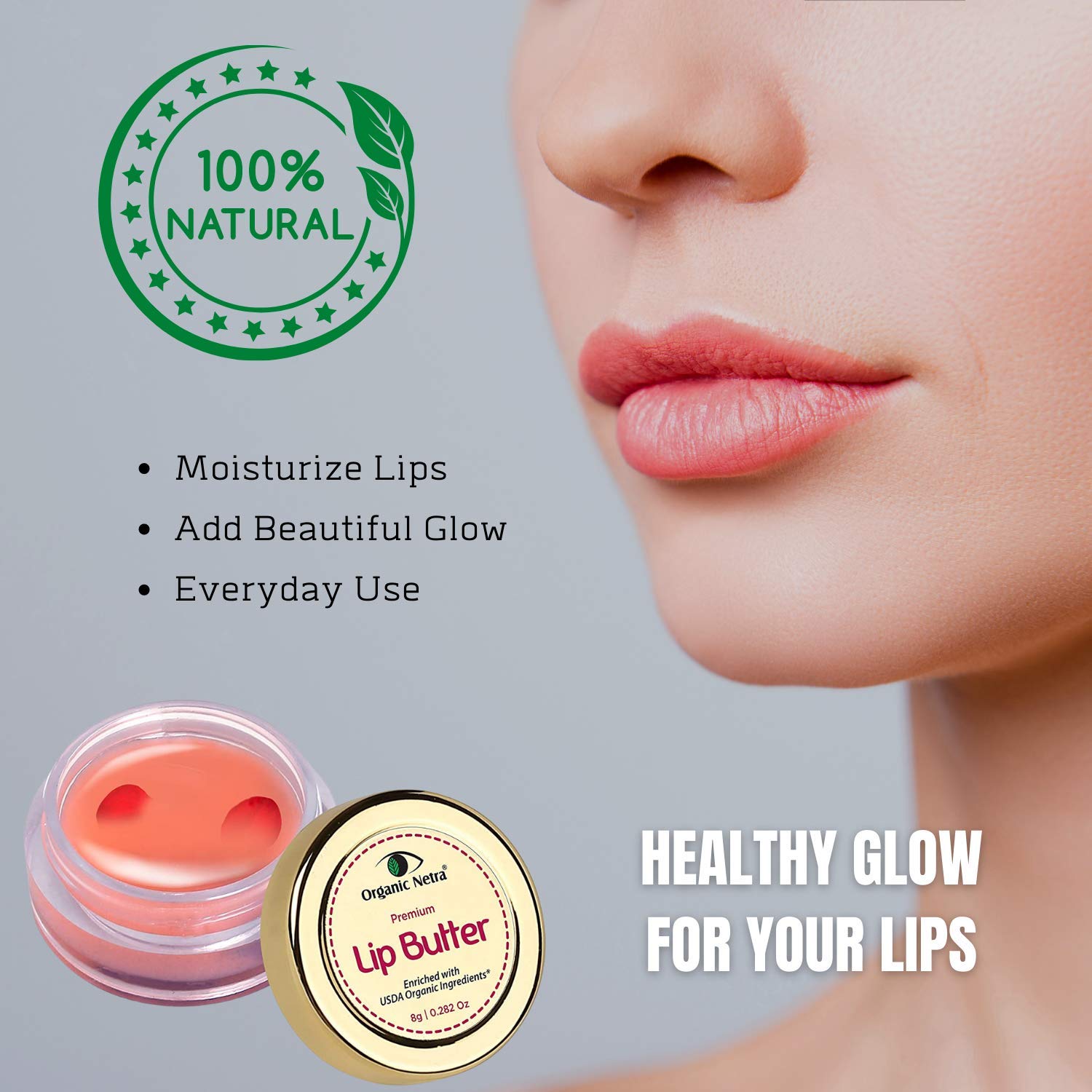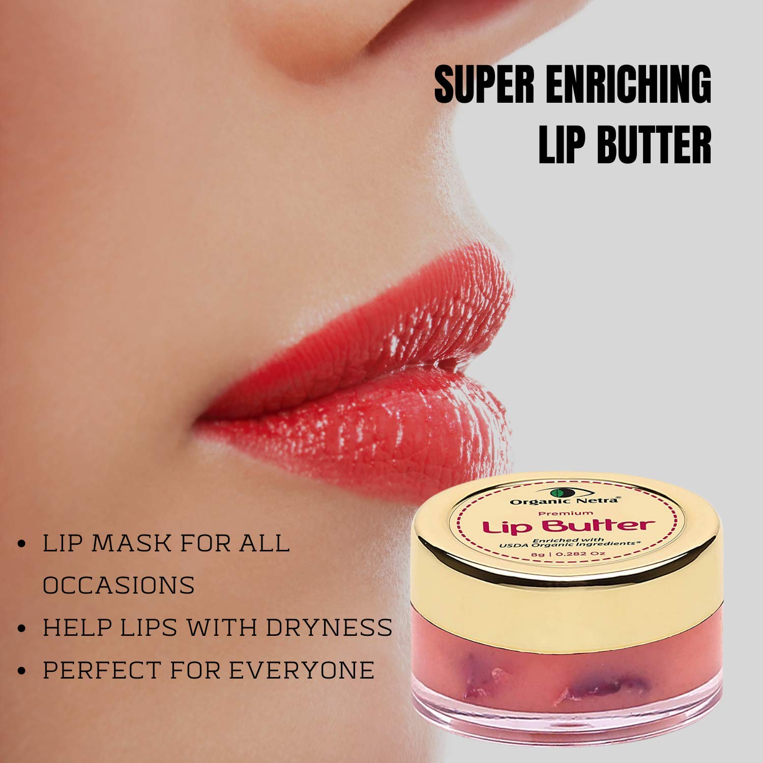 Organic Netra Premium Lip Butter | Moistures Lips | Lips Mask for All Occasions | Perfect for Everyone | Enriched with Organic and Natural Ingredients -8g