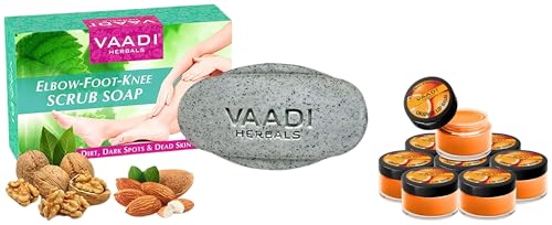 VAADI HERBALS Elbow Foot Knee Scrub Soap with Almond and Walnut Scrub 75g & Lip Balm Orange and Shea Butter 10gms x 8