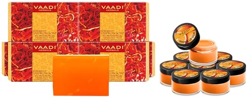 VAADI HERBALS Lip Balm Orange and Shea Butter 10gms x 8 & Super Value Luxurious Saffron Skin Whitening Therapy Soap 75g (Pack Of 6)