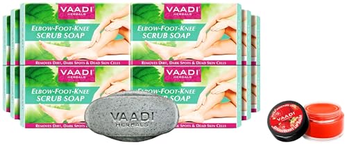VAADI HERBALS Lip Balm, Strawberry and Honey, 10g & Elbow-Foot-Knee Scrub Soap with Almond and Walnut, 75g (Pack of 12)