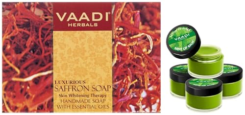 VAADI HERBALS Value Lip Balm, Mint, 4 x 10g & Luxurious Saffron Soap, Skin Whitening Therapy, 75g