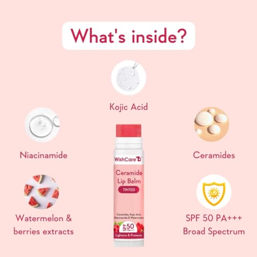 WishCare Tinted Lip Balm is really moisturizing and with SPF 50 it protects our lips and it has Kojic Acid & Niacinamide which helps in Brightening dark lip.