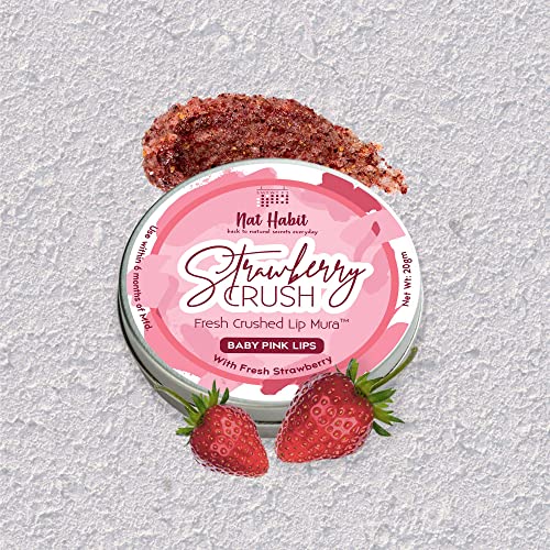 Nat Habit Lip Scrub, Strawberry Crush Lip Mura, Lip Mask For Baby Pink Lips, Discoloration, & Dark Lips Lip Care, Chemical & Preservatives Free (Pack of 1, 20 gm)