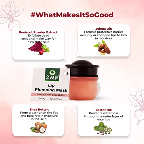 Organic Harvest Lip Plumping Sleeping Mask with Beetroot Extracts, For Dry, Dull, Hydration & Repair of Chapped Lips | Best for Men & Women - 8gms