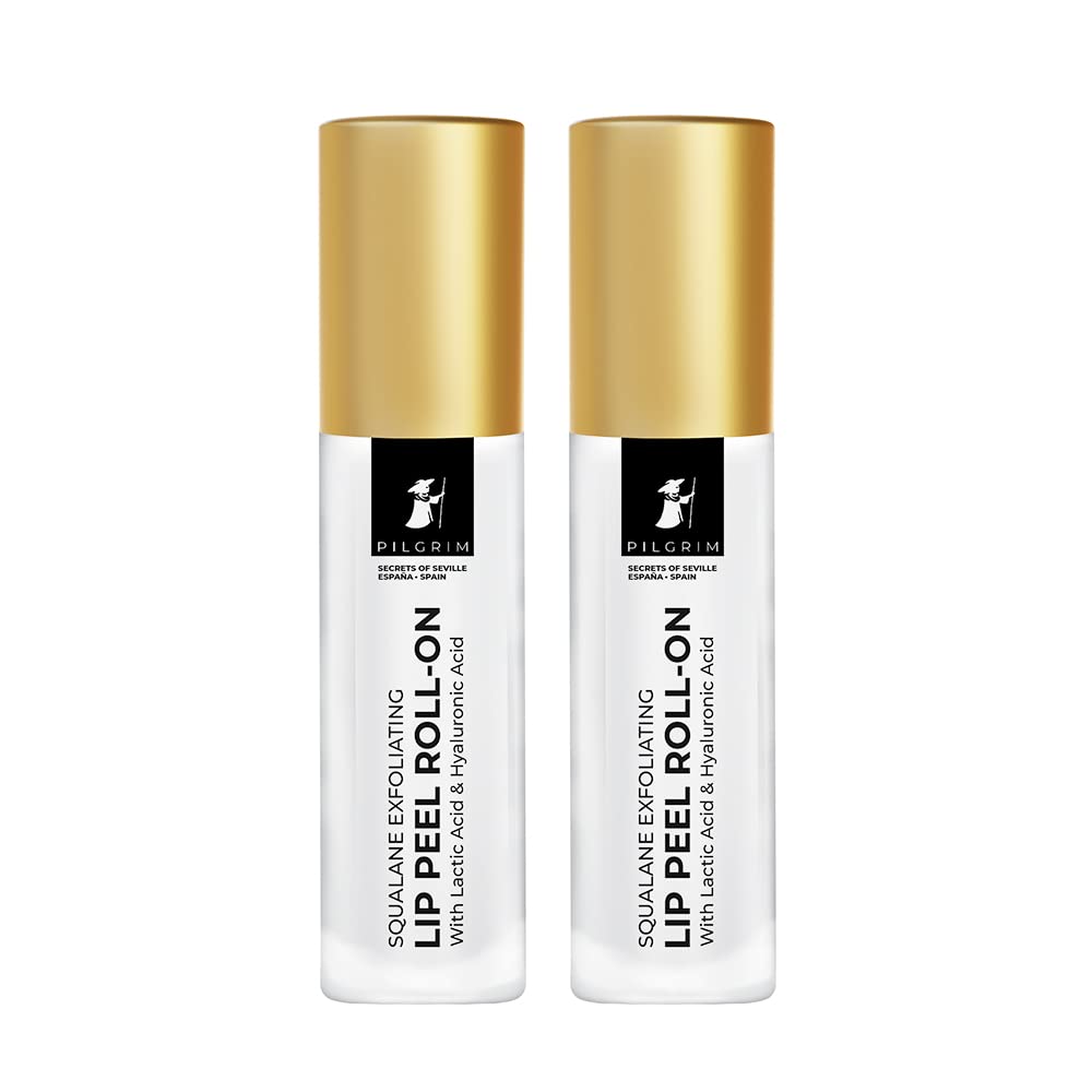 Pilgrim Squalane Lip Peel Roll-On With Lactic Acid&Hyaluronic Acid 6 Ml (Pack Of 2)|Squalane Exfoliating Lip Peel For SoftDelicate&Glossy Lips|Lip Peel For Hydrating Dry&Flaky Lips2 CountClear