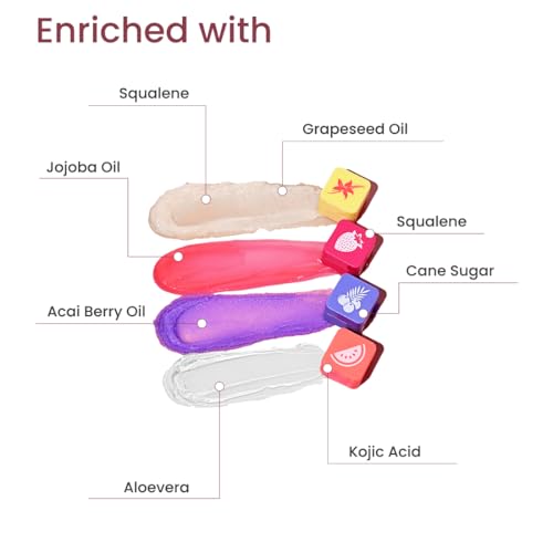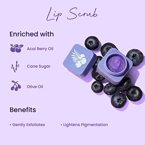 • Lip Scrub: Perfect for pigmented and chapped lips this lip scrub gently exfoliates and helps to brighten dull and dark lips. The scrub is enriched with Acai Berry oil which is rich in Vitamins A C D & E. Its antioxidant properties help keep your lips velv