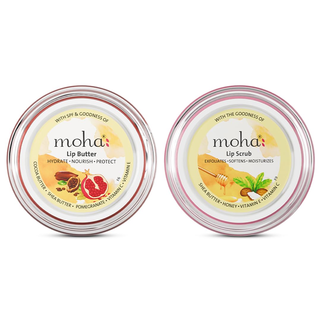 moha: Lip Butter for Dry and Pigmented Lips Hydrate * Nourish * Protect Get velvety soft lips with moha: Lip Butter. This hydrating lip butter Formulated to smoothen and nourish lips reduces the appearance of lip wrinkles. Brighten dull and pigmented lips and leave them feeling soft and hydrated. moha: Lip Scrub for Pigmented Dry and Chapped Lips Exfoliates * Softens * Moisturizes Experience plump and pretty lips with the moha: Lip Scrub. The perfect mix of grainy texture and creaminess that gently exfoliates dry and flaky skin from your lips erases fine lines and brightens the lip complexion to reveal soft and supple lips. Crafted with Shea Butter Honey Vitamin E and C this nourishing lip scrub locks in moisture.