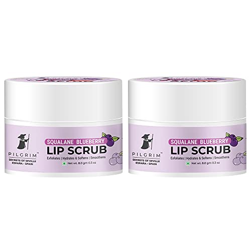 Pilgrim Squalane Lip Scrub (Pack of 2 Blueberry) for Women & Men for Smooth Lips |Lip Scrub for Dark Lips |Lip Scrub with Sugar & Shea Butter for gentle exfoliation, hydrated, smooth & soft lips.
